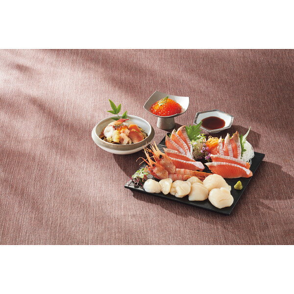 メーカー出荷時の包装状態 商品→段ボール箱→短冊熨斗→送り状※お中元のし(のし下は名入れ不可)限定の商品です 商品名 島の人 豪華お刺身セット 商品内容 北海道産お刺身ボタンエビ×2尾(計40g)、北海道産ホタテ貝柱120g、北海道産昆布だしいくら60g、北海道産サーモン刺身スライス80g、北海三昧海鮮漬100g、利尻昆布醤油磯吟醸ミニボトル15ml 商品説明 北海道のとびきり新鮮なエビやほたて上品ないくらとサーモン。