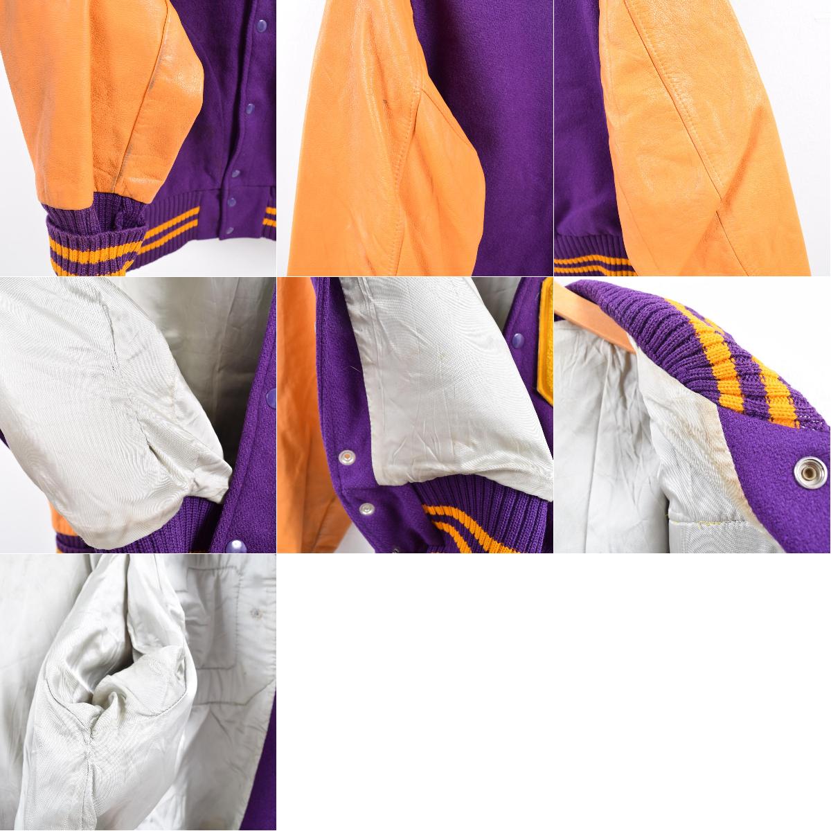 商品詳細ブランド・LASLEY KNITTING CO・特徴・スナップボタン・ヴィンテージ・モデル/形状・袖革ウールスタジャン アワードジャケット・素材・ウール:100%・本革レザー(袖)・色・パープル系 紫色・オレンジ系・柄・ワッペン・生産国年代・60年代・サイズ・メンズL・表記サイズ:42・着丈:66cm・身幅:60cm・肩幅:46cm・袖丈:59cm・コンディション・C・カテゴリ・メンズ・ジャケット・スタジャン・アウター・商品番号・wbj3035・取扱店・ネットショップ・スタッフコメントLASLEY KNITTING CO 袖革ウールスタジャン アワードジャケット / メンズL / 商品番号 wbj3035※USEDヴィンテージアイテムですので使用感、リペア跡、ダメージ、汚れ、擦れ、色褪せなどございますが、ビンテージアイテムのリアルな表情として捉えていただきご注文御願いします。