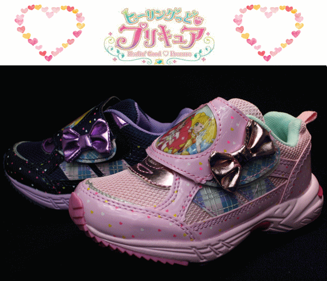 送料無料 ヒーリングっど プリキュア 4223 子供靴 キッズ スニーカー シューズ 女の子 ネイビー ピンク プレゼント 新生活 通園 普段履き 保育園 幼稚園 厚底 かわいい 星柄 ハート柄 ラメ リボン キラキラ 靴 ヒーリングッド ひーりんぐっど 15cm 16cm 17cm 18cm 19cm