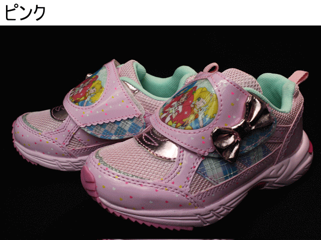 プリキュアシリーズ最新作【ヒーリングっど プリキュア】全面にプリキュアのプリントを施し、ナイロン部分にはキラキラ輝くラメの可愛いデザイン 大きめのベルクロで脱ぎ履きも楽々♪